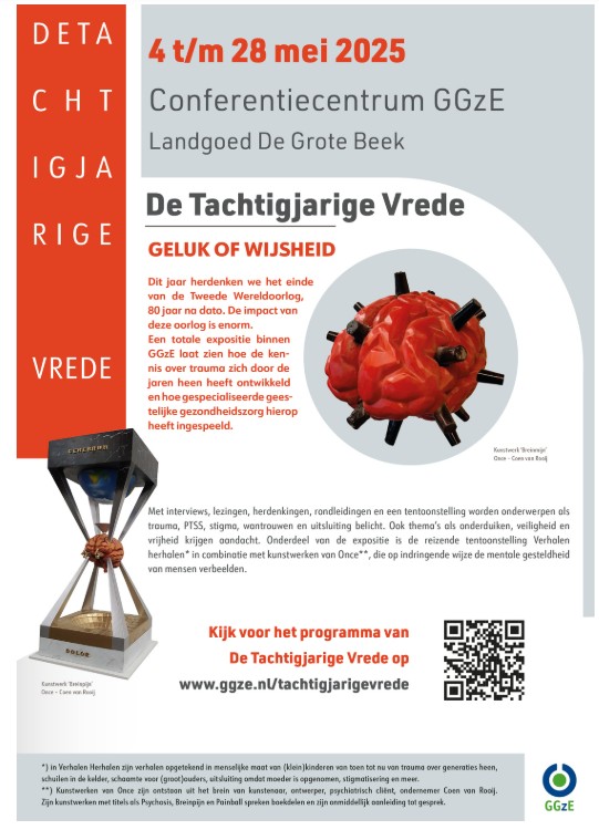 In 2025 herdenken we het einde van de tweede wereldoorlog, 80 jaar na dato. De impact van deze oorlog op de geestelijke gezondheidszorg is enorm. De lessen van toen zijn nu nog steeds relevant. Daarom besteedt GGzE in de maand mei extra aandacht aan deze ontwikkelingen met de expositie De Tachtigjarige Vrede.