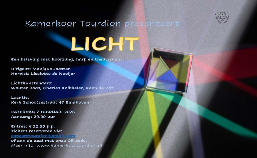Een bijzonder concert waarin het thema licht centraal staat. In een stad als Eindhoven, waar licht vaak wordt geassocieerd met techniek en innovatie, kiest Tourdion voor een bredere, poëtische benadering: licht als natuurverschijnsel, als symbool van hoop, als religieuze ervaring, als geboorte én als kunst.